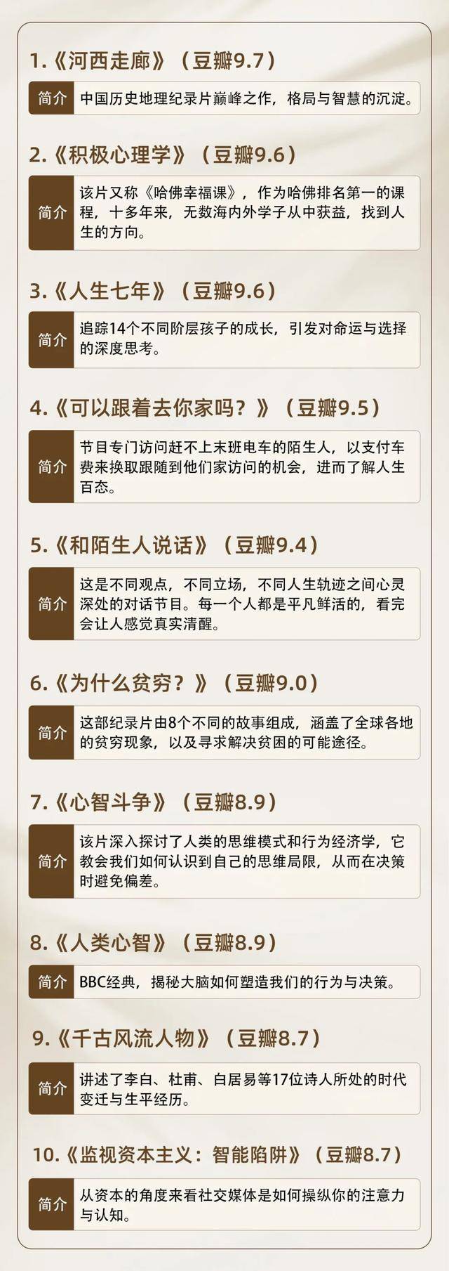 比如这十部高分电影,涵盖了人性、情感、成长等多个主题。